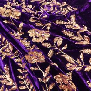 卸売 高品質シルクスパンコール刺繍生地 ドレス・衣料品・アパレル用スパンコールベルベット生地